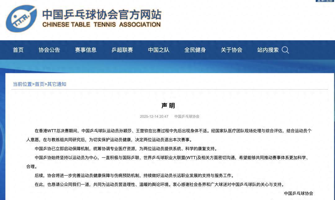 在香港WTT总决赛的本事,中国乒乓球队的孙颖莎和王楚钦在比赛时间赓续感到身段不幽闲。历程国度队医疗团队现场会诊和全面评估,再加上通晓员本东说念主的意愿,历程阐发注解组的共同考虑,为了确保通晓员的身段健康,最终决定让两位通晓员退出本次比赛。