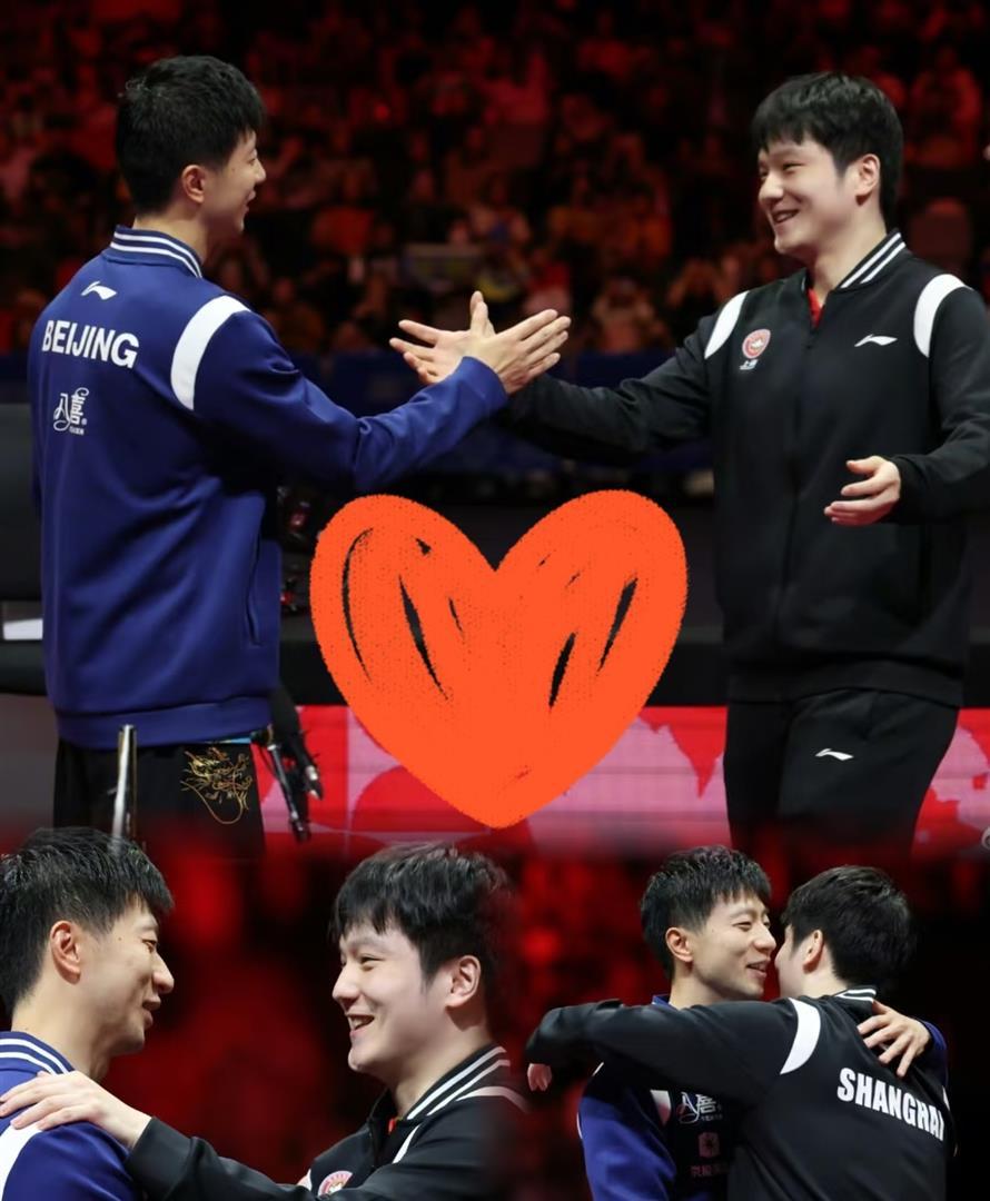 红色队服行动视觉干线,串联起三代球员的事业轨迹。从马龙2008年行动陪练为王励勤递毛巾,到2024年为樊振东戴上奥运金牌,统一抹红色见证了判然不同的时期语境。细节中的互异雷同耐东说念主寻味:早期队服肃穆实用性,而今的策画更强调科技感与个性化抒发;马龙的传统合手拍姿势与王楚钦交融新期间的动作作风,流露着磨练法式的演进。这些轻浅分袂组成一组视觉隐喻,论说着从”训诫传承”到”创新随性”的叙事转型。