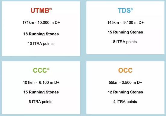 仅以2020年UTMB®主要组别的为例: