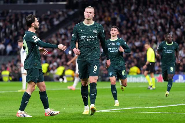 第45分钟,皇马角球攻势被突围,曼城俄顷组织起快速反击,奥赖利忘我横传,哈兰德门前劲射,库尔图瓦神奇扑救化解,随后谢尔基小角度补射,再度次被扑出,皇马门前将信将疑。
