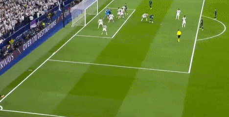 第80分钟,居莱尔角球传中,贝林厄姆争顶未果,威尼修斯门前凌空钩射打高,接二连三滥用契机。