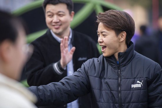 贵府图:王霜与球迷疏通。新华社记者 伍志尊 摄