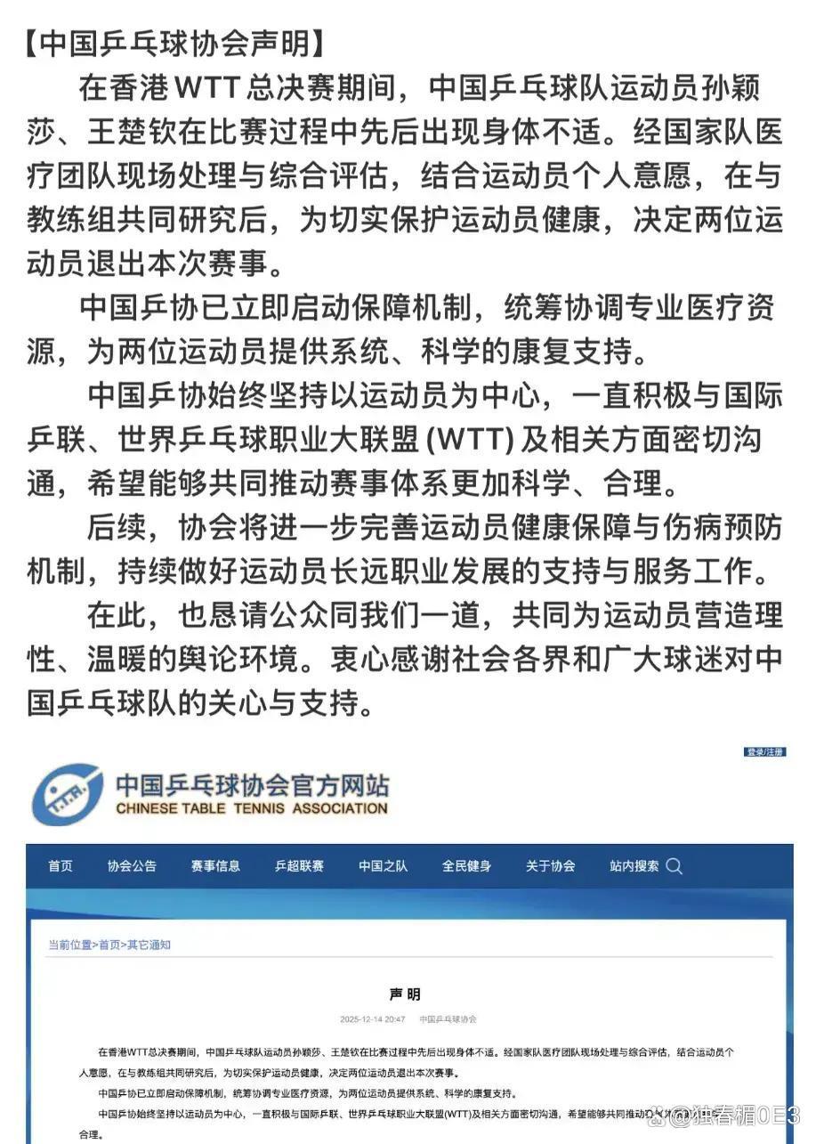 中国乒协在比赛手艺发布了声明,先容了医疗团队的责任和受伤选手的康复策画,保证畅通员能取得专科的调养和支握,减少伤病带来的影响。这么的安排也反应了如今竞技体育中多量存在的伤病问题。