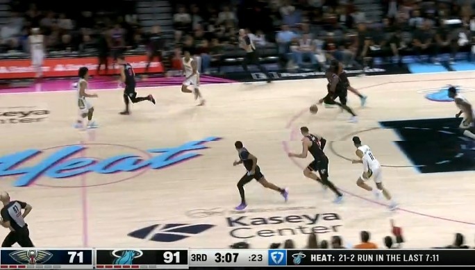 要打花了?阿德巴约接球射中三分 热火打出21-2攻势跳动鹈鹕20分