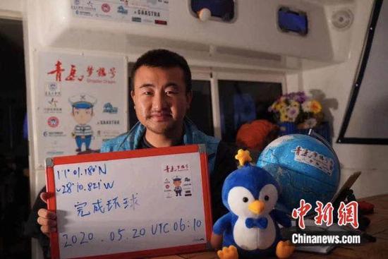 在获得“馈遗”之前,徐京坤带着妻子阿九和他的青岛生机号双体风帆,经过海上35天的连络飞动,从南半球回到北半球,抵达亚速尔,完成了为期三年的全球飞动,他的飞动轨迹也仍是在地球上画了一统统这个词圈。
