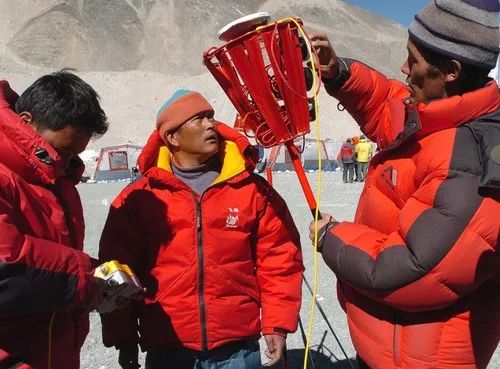 2005年4月16日,国度测绘局地面测量处测绘人人在海拔5200米的珠峰大本营培训参预珠峰高程测量的8名峻岭互助主说念主员,给他们教会立觇标,GPS、舒心、雷达等仪器的装置和测量循序。新华社记者索朗罗布摄
